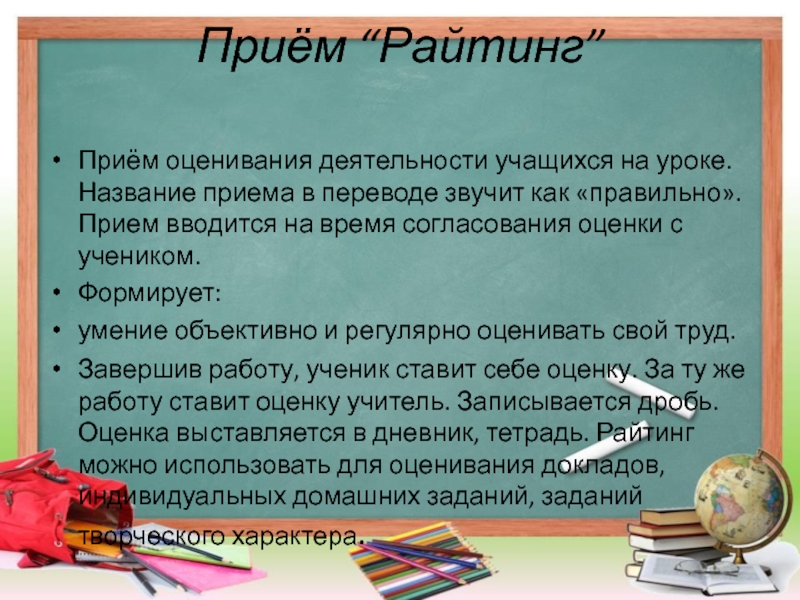 Приём оценивания деятельности учащихся на уроке. Название приема в переводе