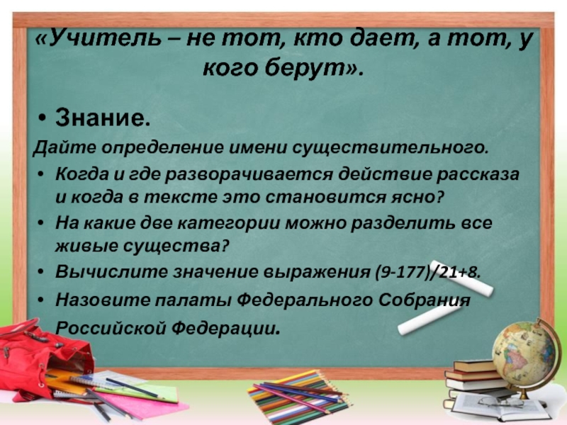 Слайд 14«Учитель – не тот, кто дает, а тот, у кого берут».