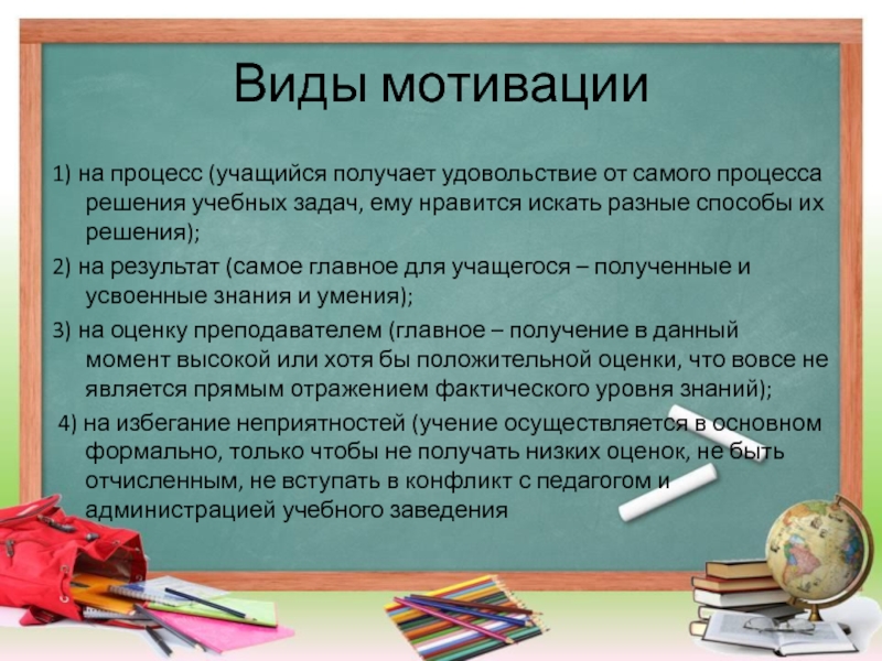 1) на процесс (учащийся получает удовольствие от самого процесса решения