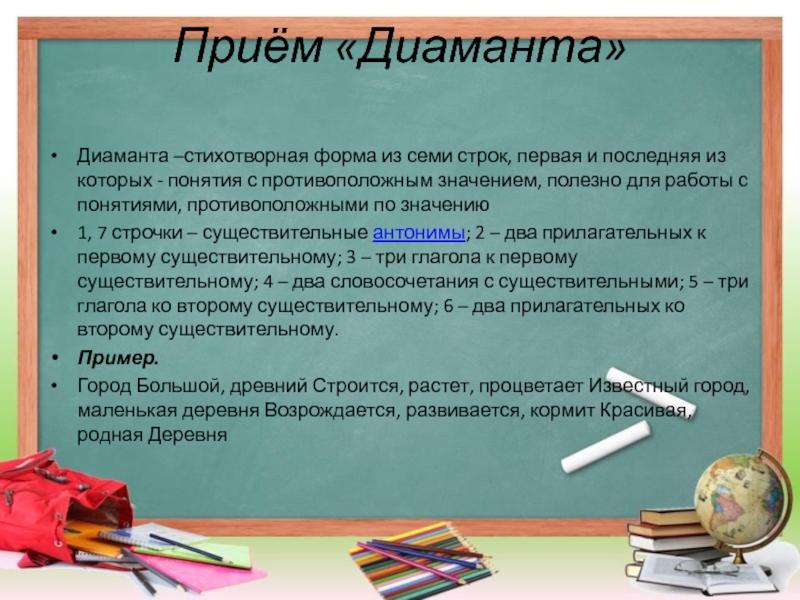 Диаманта –стихотворная форма из семи строк, первая и последняя из