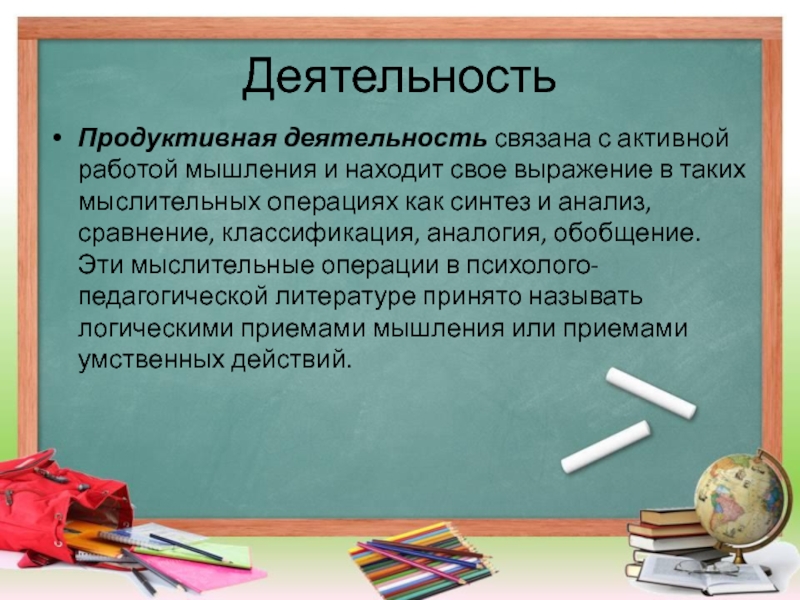 Продуктивная деятельность связана с активной работой мышления и находит свое выражение