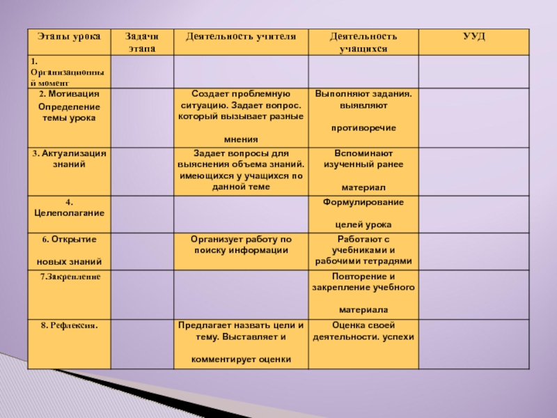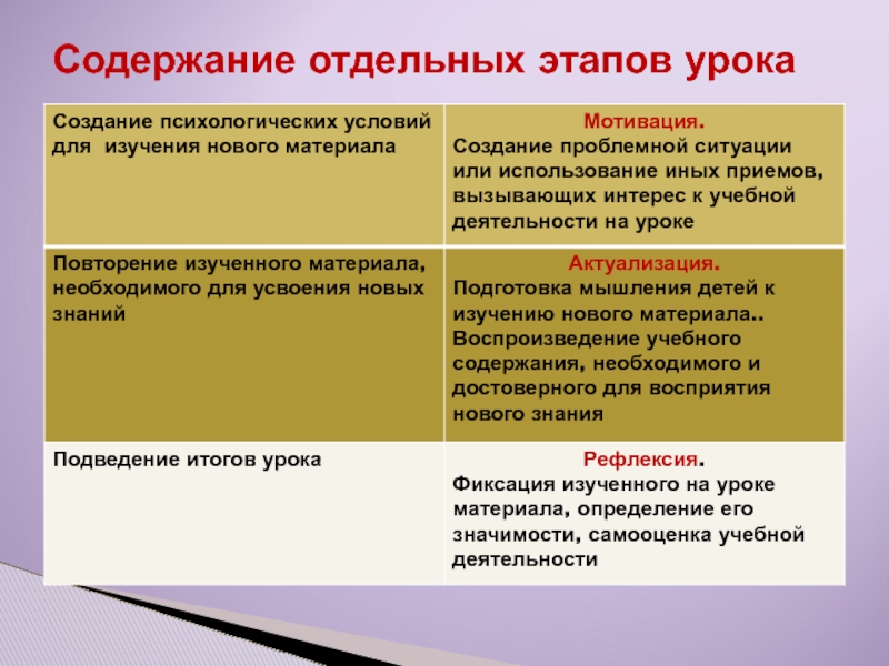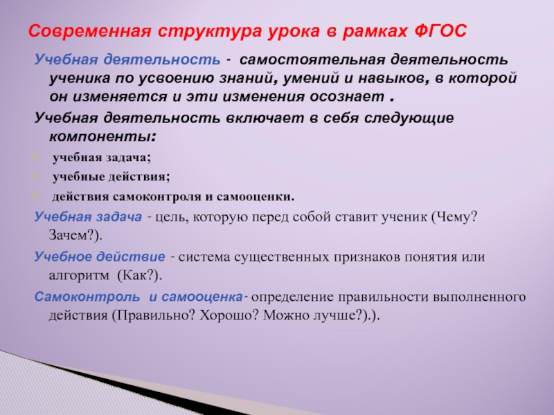 Современная структура урока в рамках ФГОС