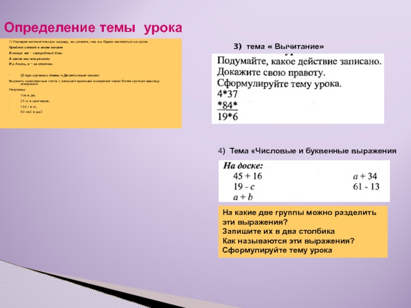 4) Тема «Числовые и буквенные выражения