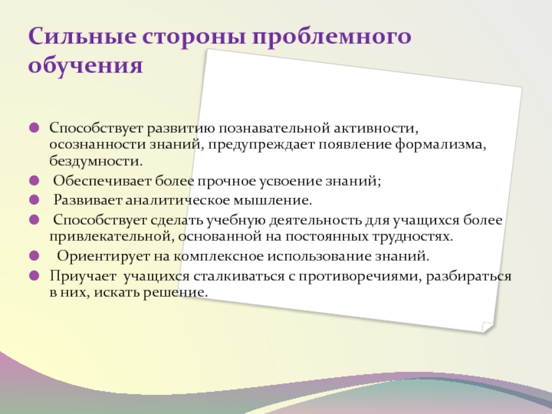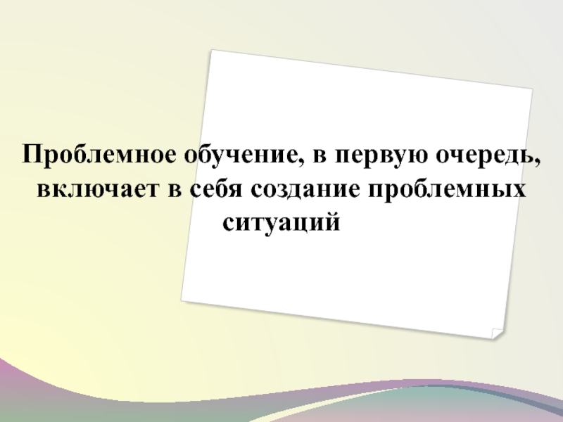 Слайд 3Проблемное обучение, в первую очередь, включает в себя создание проблемных ситуаций