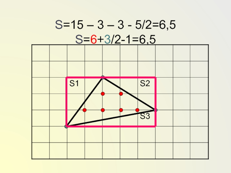 Слайд 11S=15 – 3 – 3 - 5/2=6,5
