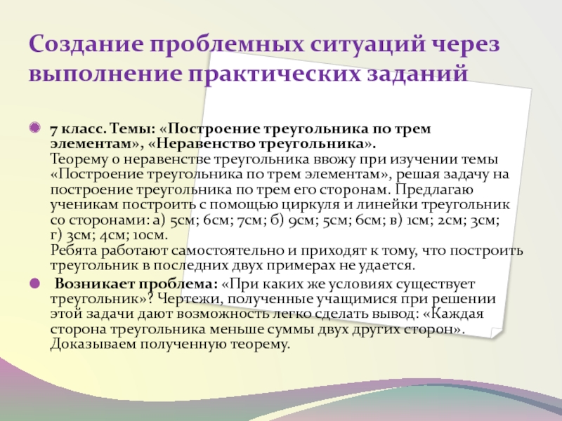 Слайд 7Создание проблемных ситуаций через выполнение практических заданий
