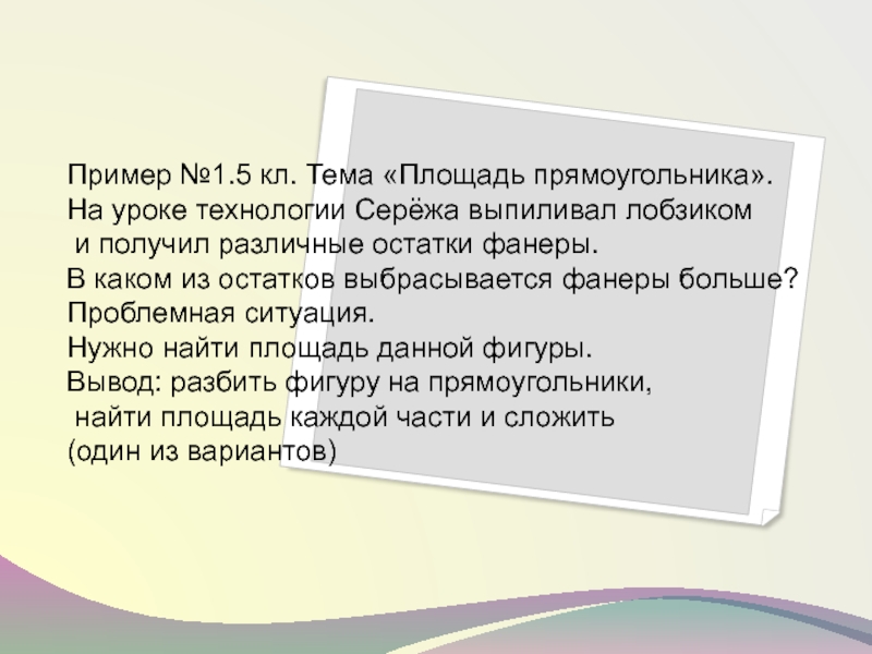 Слайд 8Пример №1.5 кл. Тема «Площадь прямоугольника».