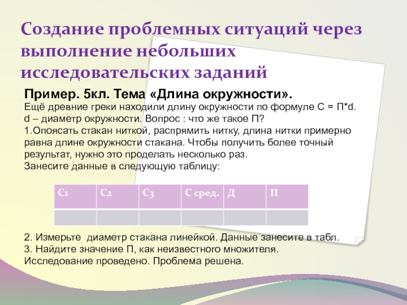 Слайд 17Создание проблемных ситуаций через выполнение небольших исследовательских заданий
