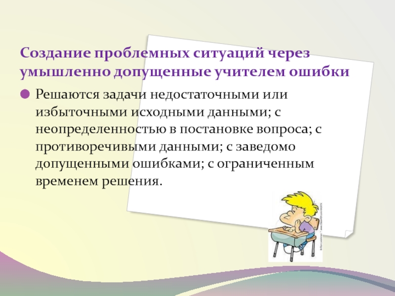 Слайд 4Создание проблемных ситуаций через умышленно допущенные учителем ошибки