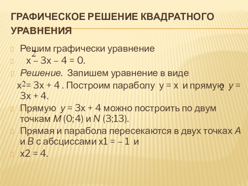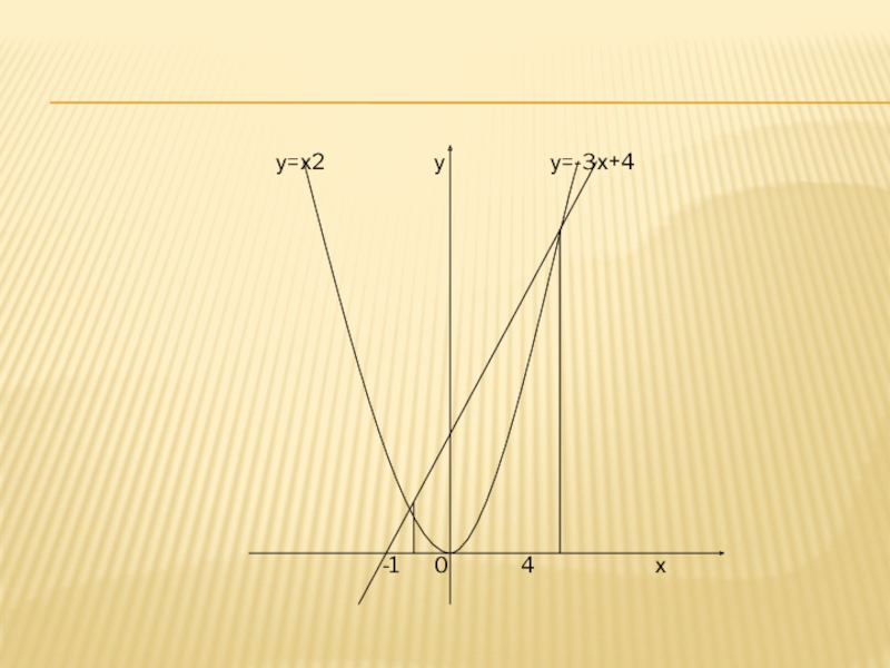 х = 3х + 4 . Построим параболу у = х и прямую у = 3х + 4.