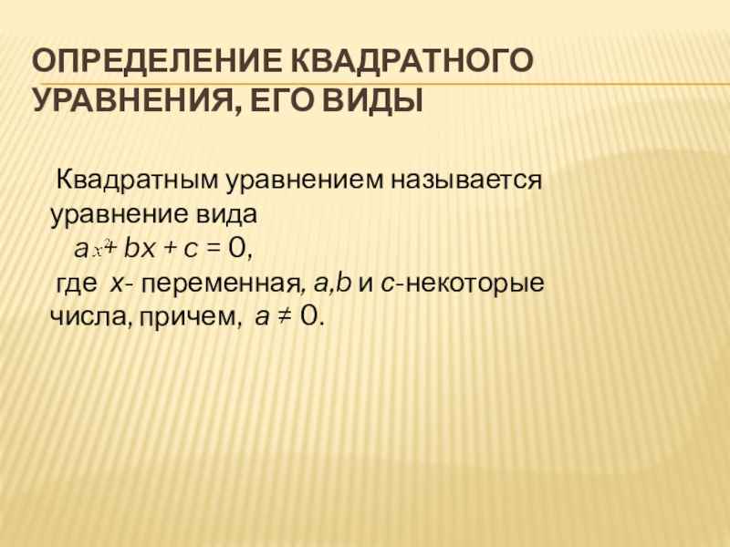 где х- переменная, а,b и с-некоторые числа, причем, а ≠ 0.