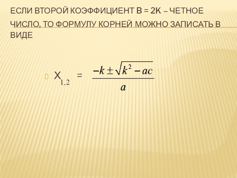 Слайд 20Если второй коэффициент b = 2k – четное число, то формулу
