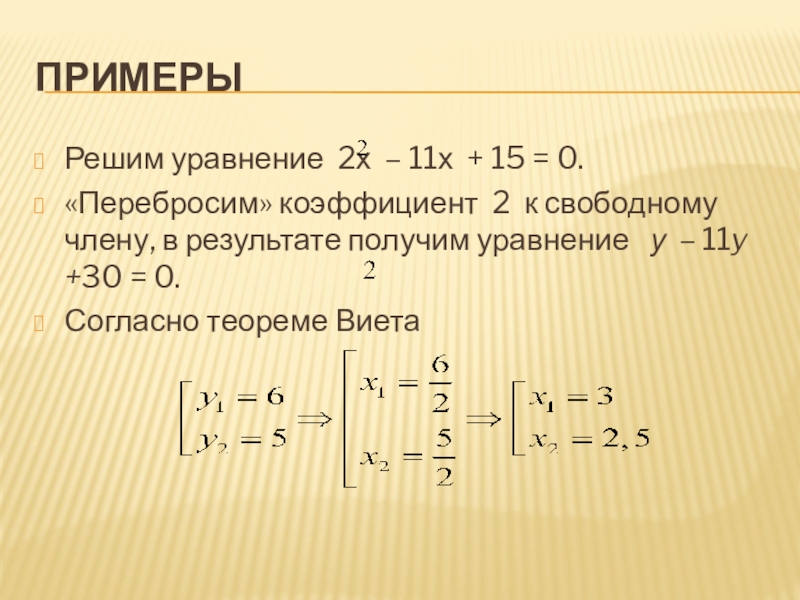 Слайд 14 Решение уравнений с использованием теоремы Виета