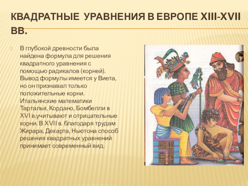 Слайд 6Квадратные уравнения в Европе XIII-XVII вв.