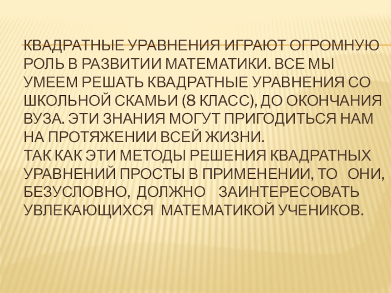 Слайд 23квадратные уравнения играют огромную роль в развитии математики. Все мы умеем