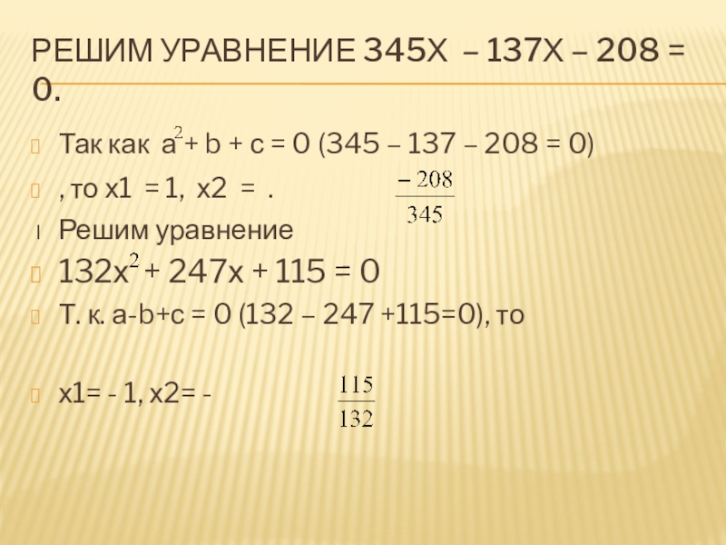 + b + с = 0 (345 – 137 – 208 = 0)