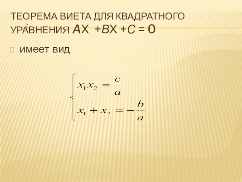 Слайд 15Теорема Виета для квадратного уравнения Aх +вх +с = 0
