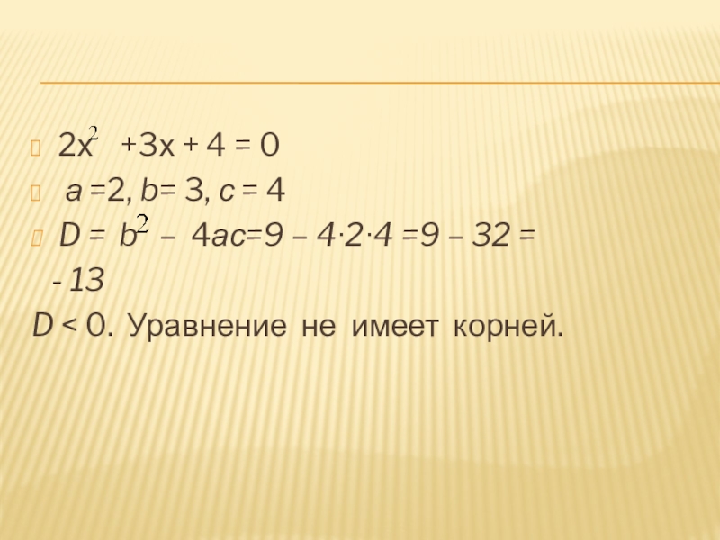 D = b – 4ас=9 – 4∙2∙4 =9 – 32 =
