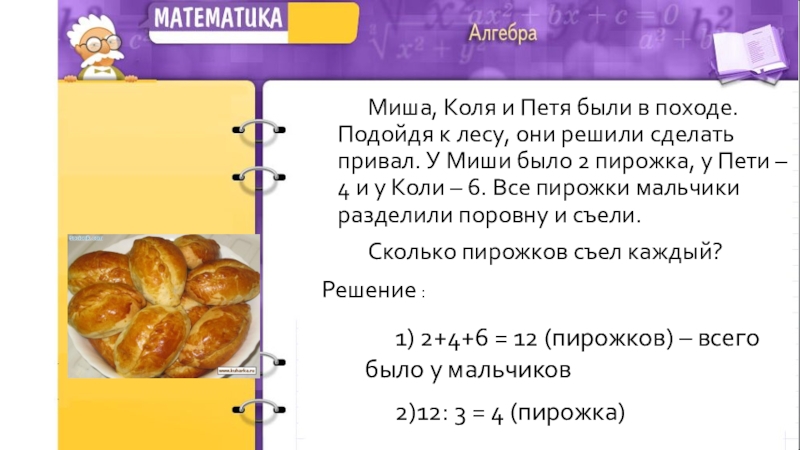 Ответ: Каждый из мальчиков съел 4 пирожка
