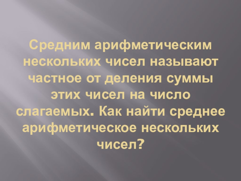 Средним арифметическим нескольких чисел называют частное от деления суммы этих чисел на число слагаемых. Как найти среднее