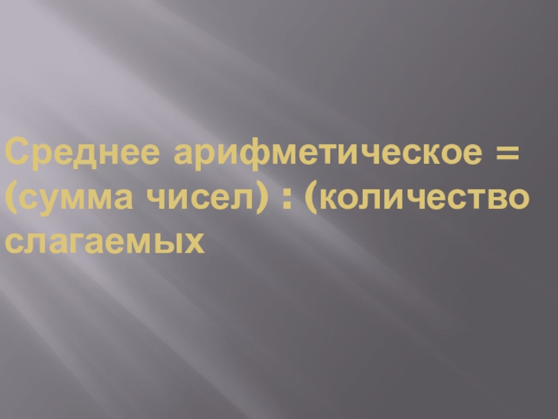 Слайд 4Среднее арифметическое = (сумма чисел) : (количество слагаемых