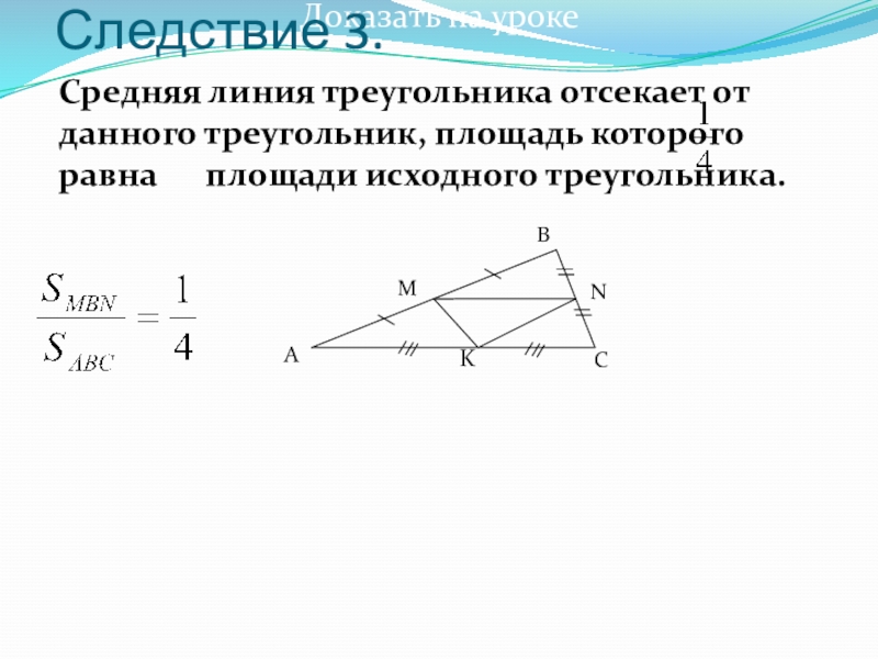 Концы отрезка MN лежат на сторонах треугольника. Отрезок MN параллелен третьей стороне и равен его четверти.