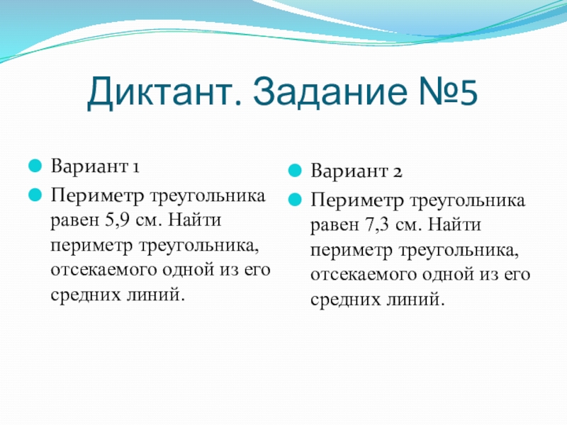 Периметр треугольника равен 7,3 см. Найти периметр треугольника, отсекаемого одной из его средних линий.
