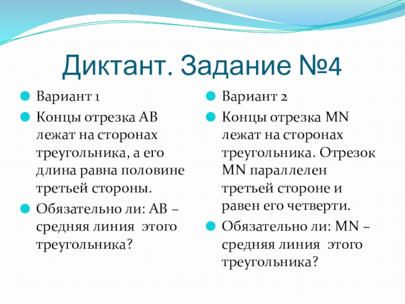 Обязательно ли: MN – средняя линия этого треугольника?
