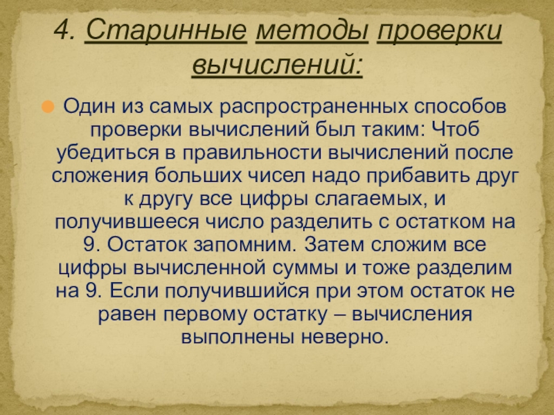 4. Старинные методы проверки вычислений: