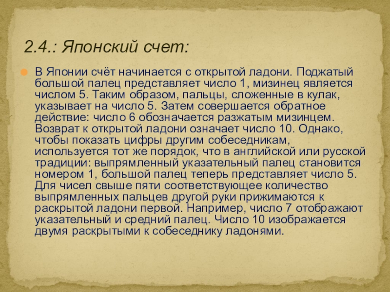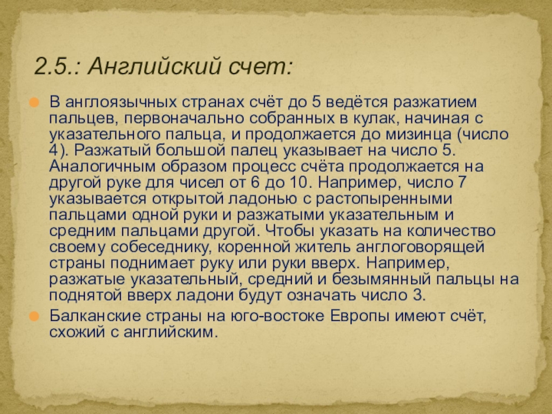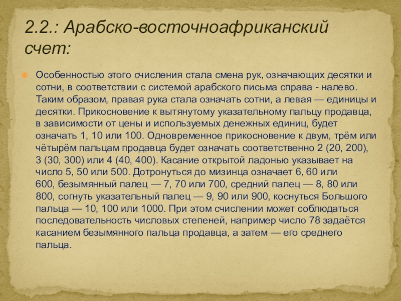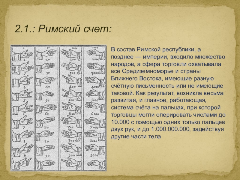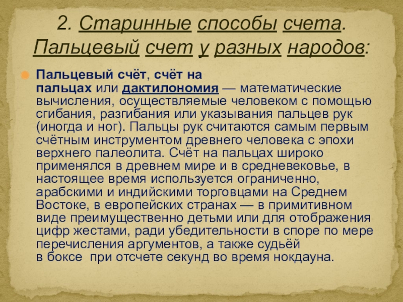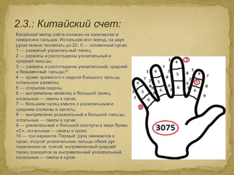 2. Старинные способы счета. Пальцевый счет у разных народов: