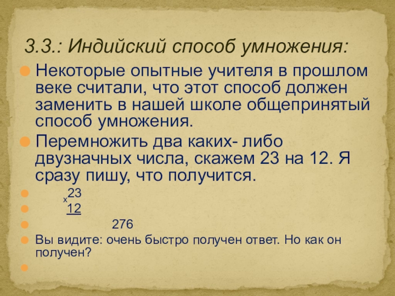3.3.: Индийский способ умножения: