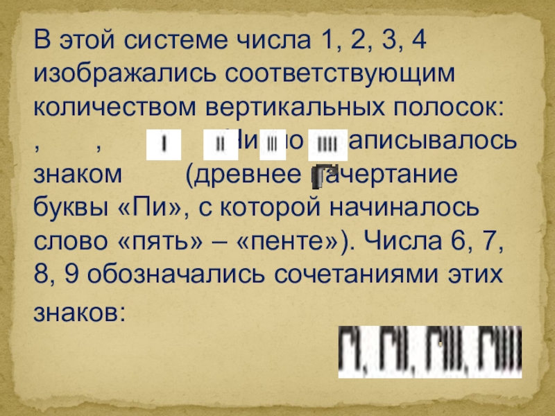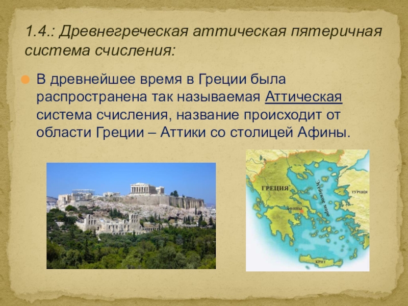 1.4.: Древнегреческая аттическая пятеричная система счисления: