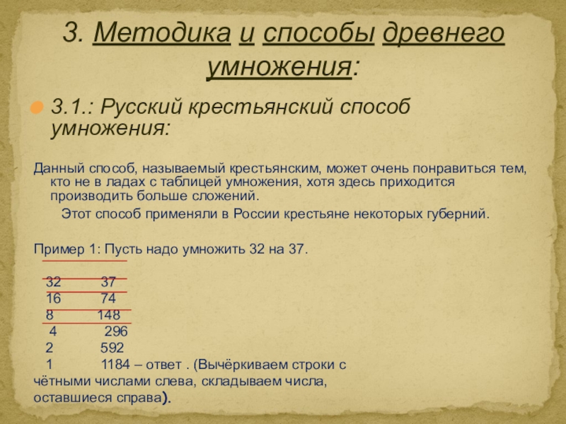 3. Методика и способы древнего умножения: