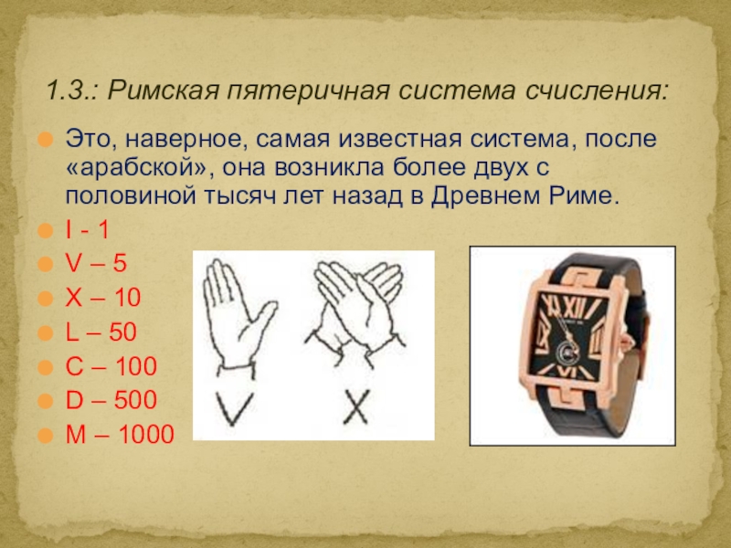 1.3.: Римская пятеричная система счисления: