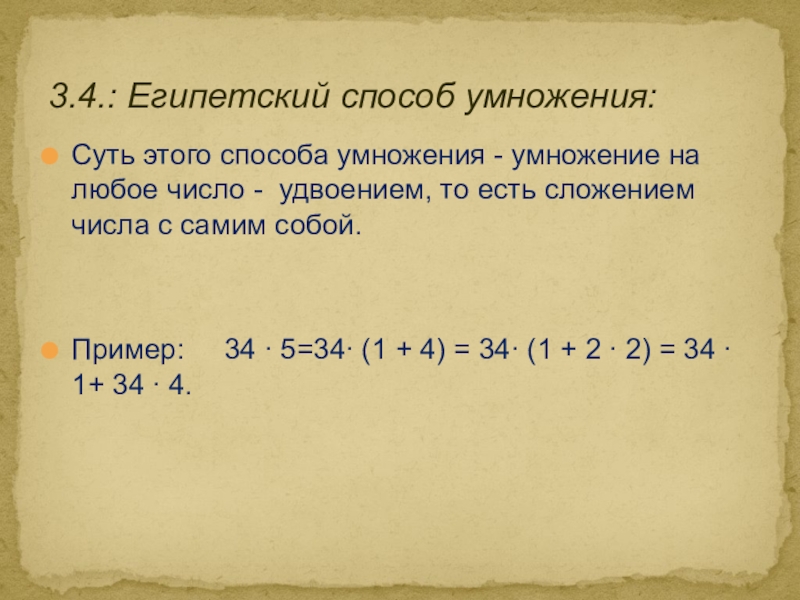 3.4.: Египетский способ умножения: