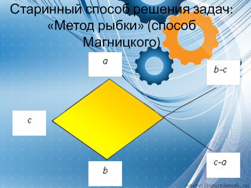 Слайд 3Старинный способ решения задач: «Метод рыбки» (способ Магницкого)