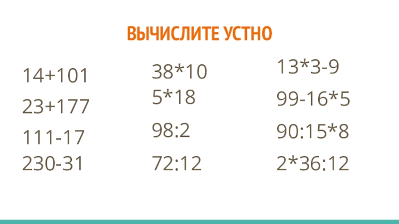 Слайд 2ВЫЧИСЛИТЕ УСТНО