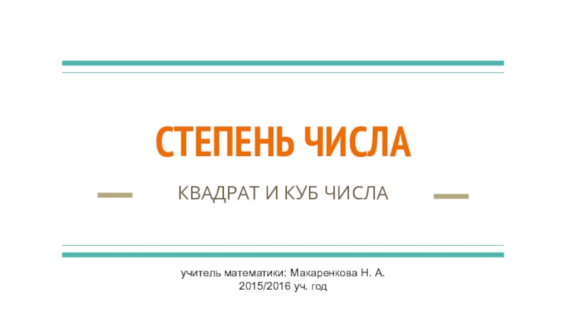 СТЕПЕНЬ ЧИСЛАКВАДРАТ И КУБ ЧИСЛАучитель математики: Макаренкова Н. А.2015/2016 уч. год