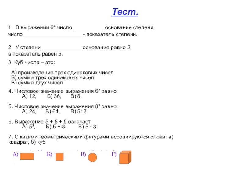 7. С какими геометрическими фигурами ассоциируются слова: а) квадрат, б) куб