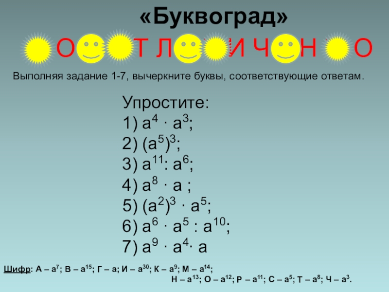 Шифр: А – а7; В – а15; Г – а; И – а30; К – а9; М – а14;