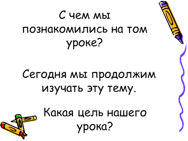 С чем мы познакомились на том уроке?Сегодня мы продолжим изучать эту тему. Какая цель нашего урока?