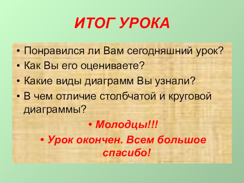 Это сайт презентаций, где можно хранить и обмениваться своими презентациями, докладами, проектами, шаблонами в формате PowerPoint с другими пользователями. Мы помогаем школьникам, студентам, учителям, преподавателям хранить и обмениваться учебными материалами.
