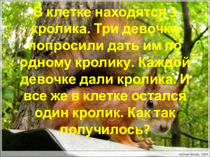 Слайд 4В клетке находятся 3 кролика. Три девочки попросили дать им по