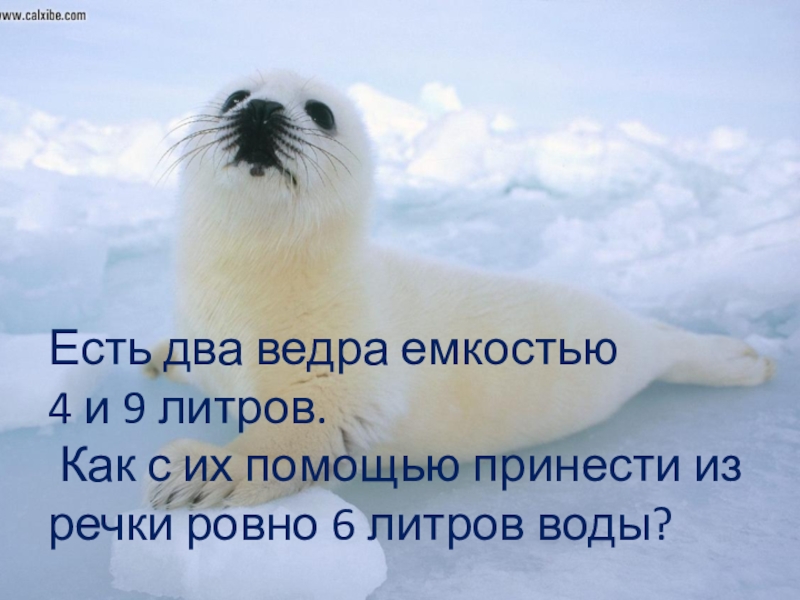 Слайд 5Есть два ведра емкостью 4 и 9 литров. Как с их