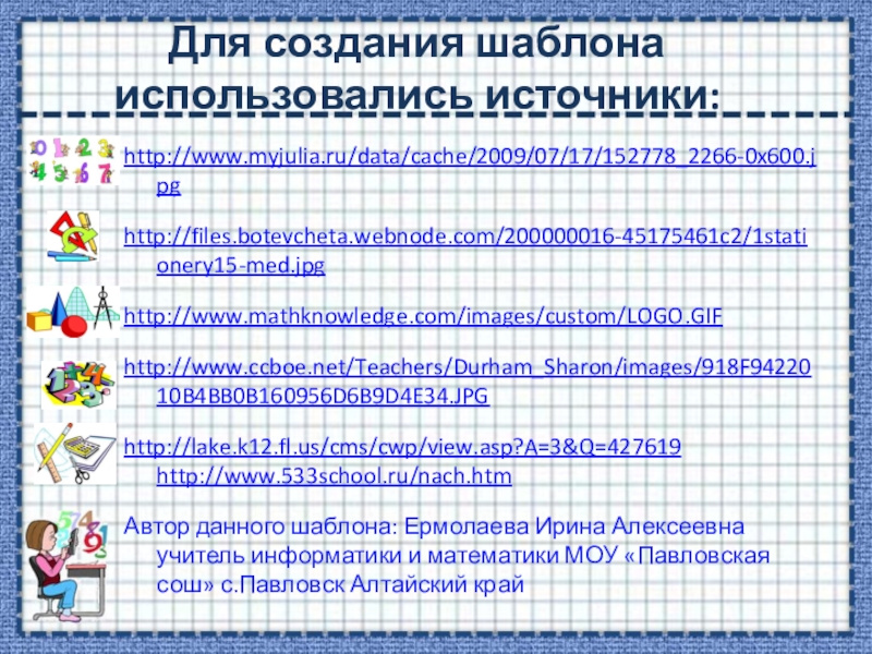 Это сайт презентаций, где можно хранить и обмениваться своими презентациями, докладами, проектами, шаблонами в формате PowerPoint с другими пользователями. Мы помогаем школьникам, студентам, учителям, преподавателям хранить и обмениваться учебными материалами.
