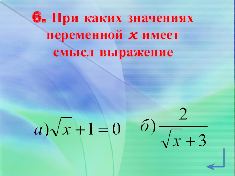 Слайд 96. При каких значениях переменной х имеет смысл выражение
