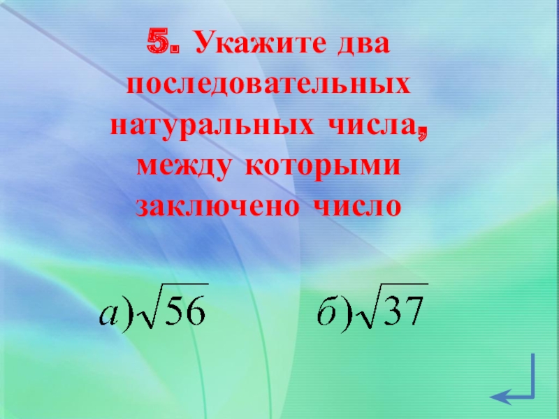 5. Укажите два последовательных натуральных числа, между которыми заключено число