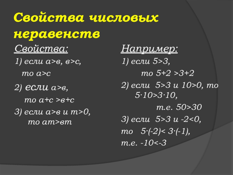 2) если 5>3 и 10>0, то 5·10>3·10,