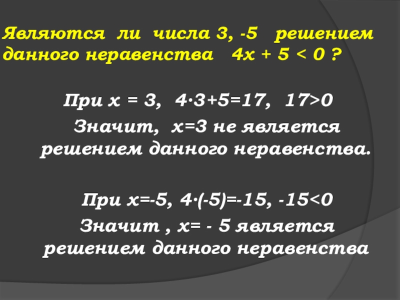 Значит , х= - 5 является решением данного неравенства
