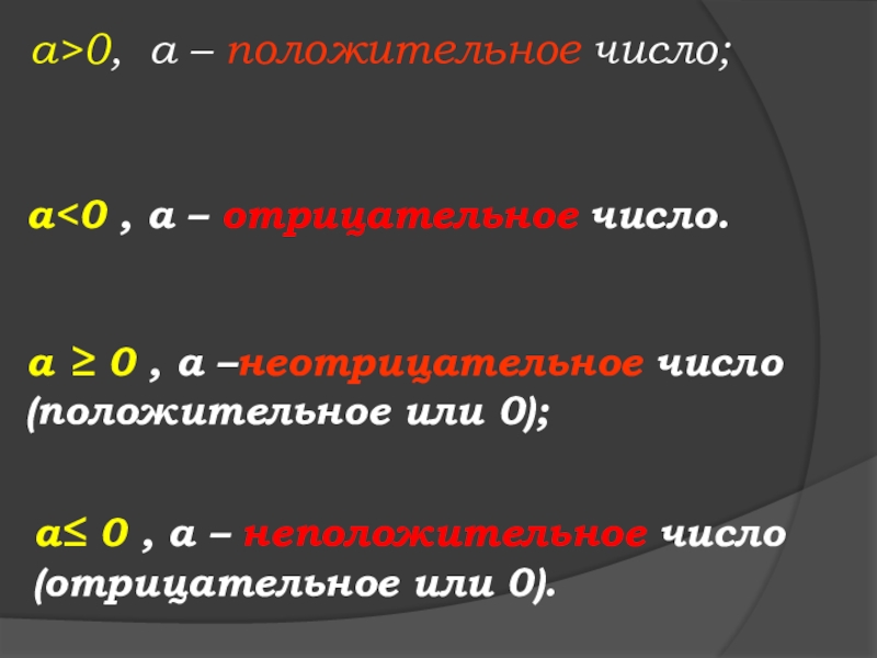 а≤ 0 , а – неположительное число (отрицательное или 0).